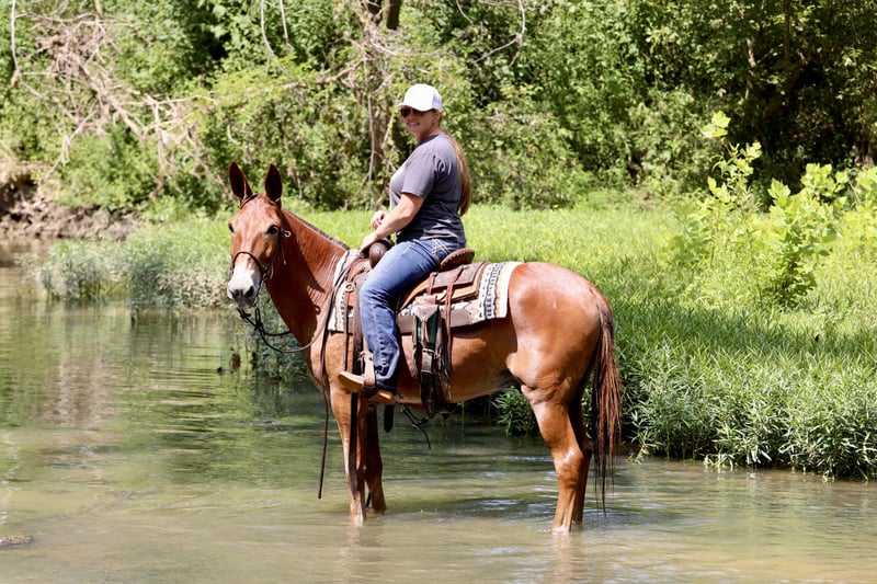 🍁𝒕𝒉𝒆 𝐅𝐀𝐋𝐋 𝑺𝒑𝒆𝒄𝒕𝒂𝒄𝒖𝒍𝒂𝒓🍁 Happening now thru MONDAY | SEPTEMBER 22nd - Available EXCLUSIVELY on HorseBid's website! For more details and to register visit: www.Horsebid.com CONSIGNOR CONTACT: Lucky 13 Equine 765-698-4655 LOCATION: Mount Vernon, Kentucky BREED: Mule REGISTERED: No REGISTERED NAME: Peter Pan COLOR: Sorrel HEIGHT: 14.3 AGE: 9 GENDER: John Mule 🌟Peter Pan is a 9-year-old, 14.2-hand John mule with all the looks, temperament, and training to stand out anywhere. He’s an experienced and versatile mount who is just as enjoyable on the trail as he is in the arena or at work. Easy to catch and eager for attention, Peter Pan has a quiet, people-oriented nature and a million dollar personality. He stands patiently for brushing, clipping, farrier work, and even having his ears handled, and he is calm and trustworthy around children, dogs, and even little critters. Peter Pan is 100% sound in every way. Under saddle, Peter Pan walks, trots, and canters smoothly in both directions, stops and backs willingly, and side-passes to open and close gates with ease. He works equally well alone or in company without becoming barn-sour or attached to other animals. This mule has been extensively trail-ridden, including overnight camping trips from here to Montana, and he handles new environments and varied terrain like a seasoned pro. Peter Pan has also been shown at local fun shows in multiple classes and used at exotic animal sales to push, pen, and sort a wide variety of animals from Brahamas to ostrich’s. This guy has spent many nights coon hunting, he tracks easily with dogs, stands good for gunfire, packs out game, and you can even pony your dogs back to the truck. Peter Pan is the type you can leave off and when you’re ready he’ll ride off just like you rode him yesterday. He is also not the typical John mule that’s going to aggravate anything he is turned out with. Whether you’re looking for a sure-footed trail partner, a handy ranch mule, or a safe, versatile mount for the family, Peter Pan combines training, temperament, and experience in one stout, eye-catching package. You do not have to have mule experience to get along with Peter Pan! Our boy is truly is NOT your typical mule and will be a blessing to any family.
