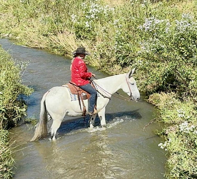 🍂 𝓐𝓾𝓽𝓾𝓶𝓷 𝑨𝑳𝑳 𝑺𝑻𝑨𝑹 𝑳𝑰𝑵𝑬𝑼𝑷 🍂 Happening now thru MONDAY | OCTOBER 6th - Available EXCLUSIVELY on HorseBid's website! For more details and to register visit: www.Horsebid.com CONSIGNOR CONTACT: Rafter D Mules 651-303-7056 LOCATION: Hastings, MN BREED: Gaited Mule REGISTERED: No COLOR: Gray HEIGHT: 16.2 AGE: 10 GENDER: Molly Mule Gertrude, or "Gerty" as we like to call her, is an elegant mule that will work for any ladies or gentlemen that love to trail ride. She is out of a Tennessee Walking mare who passed down a smooth gait, which makes taking her down the trails even more enjoyable. Gerty is a forward moving mule that does not have to be asked for every step. She does well at the front or middle of the trail group, and rides as well alone as she does with a group. Gerty has more miles on the trail than most trucks have that travel across the country. She is very experienced and takes the best care of anyone who swings a leg over her. Gerty is easy to catch whether she is with pasture mates or in a private paddock. She has no problem with her ears being touched, making her easy to halter and bridle. Gerty is easy to shoe and acts like a lady when having her feet handled. She is the type of mule than any trail rider will get along wonderfully with. Gerty stands patiently to be mounted from the mounting block or the ground. Out on the trail and can't get back in the saddle? No worries, because Gerty will stand by a log or anything needed for you to get in the saddle. She would also work well for anyone looking for an honest mount to ride at field trials. Gerty is the real deal and will make someone very happy to add her to their family. The only mistake you can make with this sweet lady is not placing the winning bid! If you have any questions or would like to meet Gerty prior to the auction ending, please give Dillon a call at 651-303-7056.