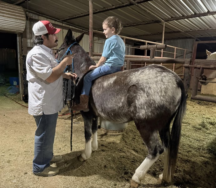"AVAILABLE ON ONLINE HORSE AUCTION AT www DOT PlatinumEquineAuction DOT com BIDDING OPEN NOW thru SUNDAY | MARCH 1ST! *Final price will be determined on auction site* CONSIGNOR CONTACT INFO: M $ Performance Horses & Ponies 661-817-9120 LOCATION: Stephenville, TX Cali is a 6-year-old Appaloosa molly mule standing 13.0 hands tall and she is the total package wrapped in chrome. This little mule has been ranch seasoned and works weekly at the sale barn penning back cattle and loading trucks — she knows a full day’s work and shows up ready every single time. Gritty, honest, and all heart, she’ll stay with you from sunup to sundown without ever looking to quit. Out on the trails, Cali is bold and sure-footed. Steep hills, rough country, water crossings, bridges, and deadfall logs are just another day at the office. She rides soft and correct in the arena, walks, trots, and lopes nice circles, has a good stop, and backs up with ease. She’s been hauled to town, is traffic safe, and has even marched right down Exchange Avenue at the iconic Fort Worth Stockyards through heavy crowds, loud music, and nonstop commotion like a seasoned pro. She’s flag broke, will drag logs, track cattle, and has been started on the lead steer. Cali has even pulled a buggy and handled it with confidence. Easy to catch, stands tied, loads and unloads quietly, and you can saddle her up and step right on. If you’re looking for a tough, classy, do-it-all mule with eye appeal and real-world experience — Cali is it. We are open to anyone interested in her to schedule a time to come see her or if you can’t make it schedule a FaceTime showing to see her. If you need help with transport don’t hesitate to ask we have a list of reputable haulers that can get her safely to your doorstep WORLD WIDE including, Alaska , Mexico, Hawaii, Canada and anywhere in between. Located in Stephenville,Texas Contact Michelle at M$ Performance Horses & Ponies LLC 661-817-9120