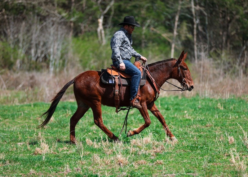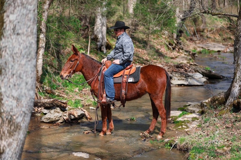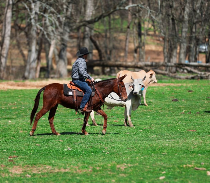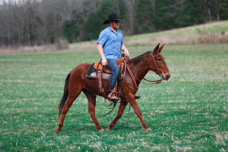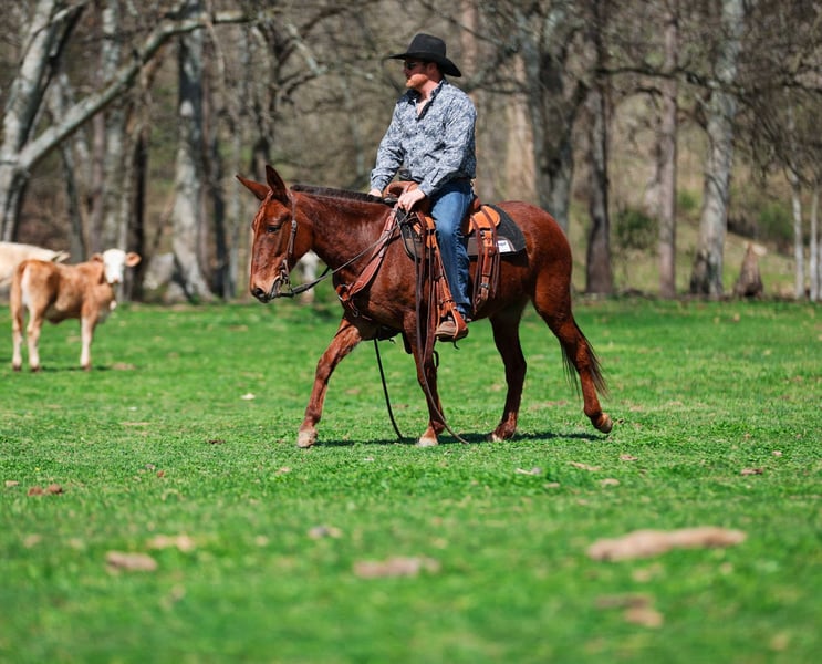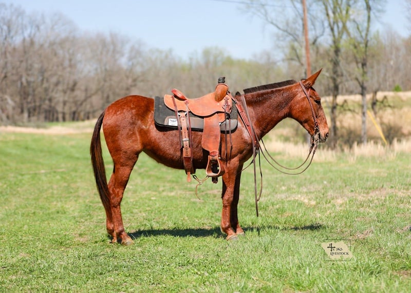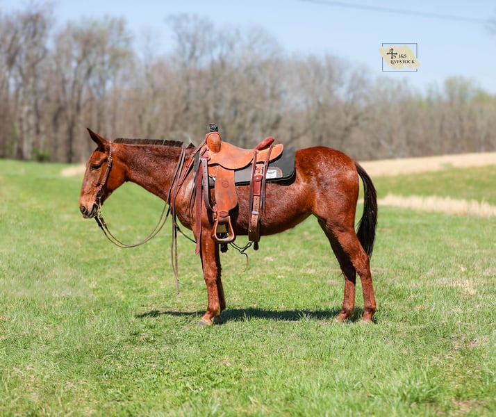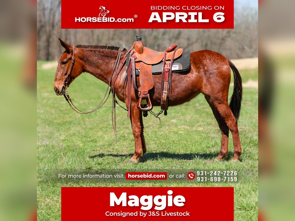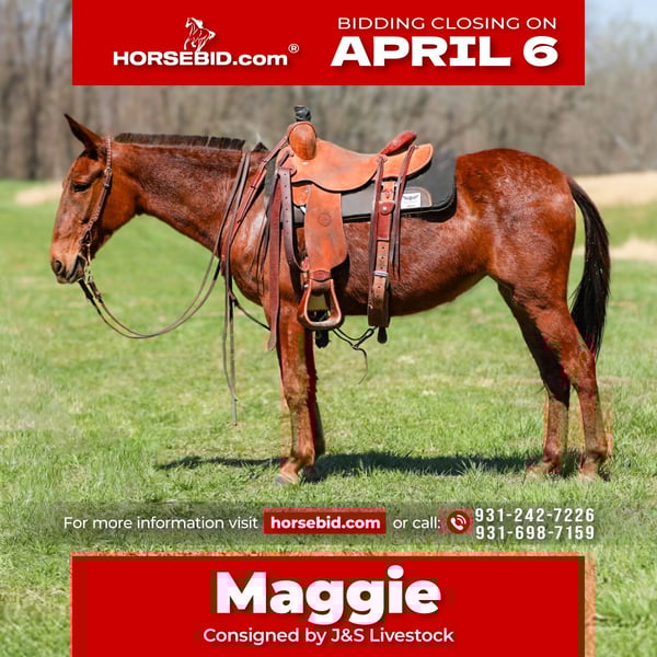 🌟𝑨𝒑𝒓𝒊𝒍 𝐀𝐋𝐋 𝐒𝐓𝐀𝐑 𝐋𝐈𝐍𝐄𝐔𝐏🌟 Happening now thru MONDAY | APRIL 6th - Available EXCLUSIVELY on HorseBid's website! For more details and to register visit: www.Horsebid.com CONSIGNOR CONTACT: J&S Livestock 931-242-7226 or 931-698-7159 LOCATION: Santa Fe, TN BREED: Mule REGISTERED: No COLOR: Sorrel HEIGHT: 14.1 AGE: 6 GENDER: Molly Mule Maggie Meet Maggie, a 6yr old mare mule standing 14.1hh. I truly don’t know where to begin on how to describe all the amazing things I have to say about this mule. We have owned Maggie for over 4 years now and I can definitely say, she’s one that’s going to be hard to let go of. You will search high and low to find a mule as calm, gentle, and good-minded as Maggie- she’s truly a once in a lifetime mule. No matter where you are, I promise she will always come find you to be loved and petted on. She has the sweetest personality, making her very desirable. She is calm on the ground, doesn’t spook at whatever is thrown her way, and always keeps a level head. We have rode Maggie many of miles through the thickest woods, she’s been on overnight camping trips where she has also been used to pack supplies, we have used her to gather and sort cattle on a ton, and one you can throw the kids on and feel safe about doing so. She is surefooted on all sorts of terrain and is experienced around lots of different animals- from Watusi cattle to buffalo, to even some water buffalo. She isn’t scared of heavy traffic, or loud atv’s and 4-wheelers. Out on the trails she is confident alone or in a group- She will happily lead or follow the pack. Maggie will neck rein, has a smooth trot, and with just a little squeeze will pick right up into a nice, balanced lope. She stands patiently to be tacked and mounted. Throw the reins on her neck and she will follow you anywhere. She loads in and out of a trailer perfectly, you can snap at her a little and she will load herself for you. Maggie is so easy to get along with and will truly make anyone happy. She is 100% sound-we have a recent PPE on her, and has zero bad habits. For any further information please feel free to reach out! Bailey 931-242-7226 or JT 931-698-7159