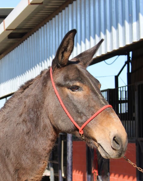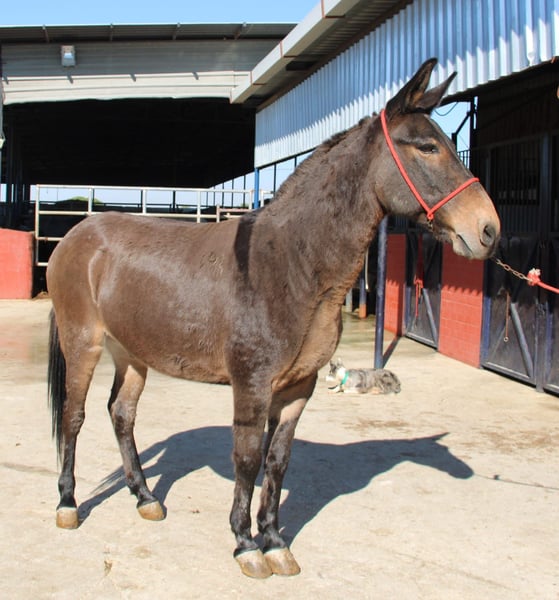 All of our noble mules have been ridden and are safe for traffic, not skittish, and regularly participate in Romerías and Ferias (Spanish festivals), so they are accustomed to a certain level of noise and commotion. The handsome one allows the rider to sit comfortably, is very well-behaved, and has a lovable character, making him ideal for relaxed rides. Upon request, he can stay with us for further training. International transportation can be arranged.