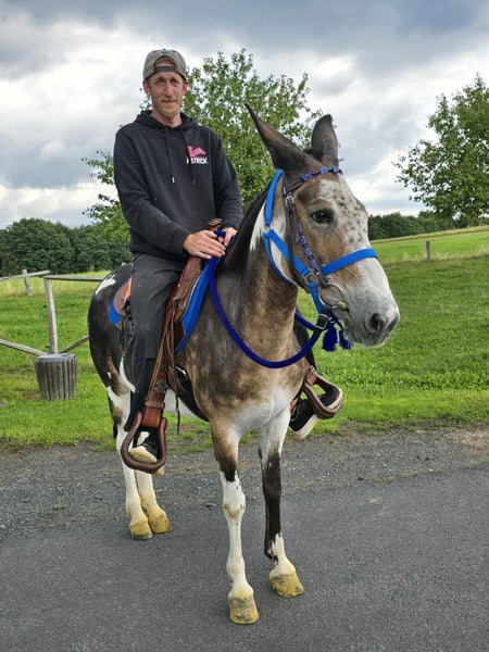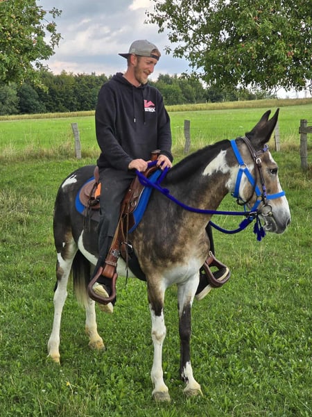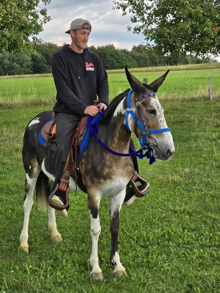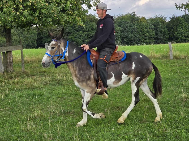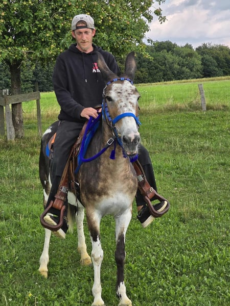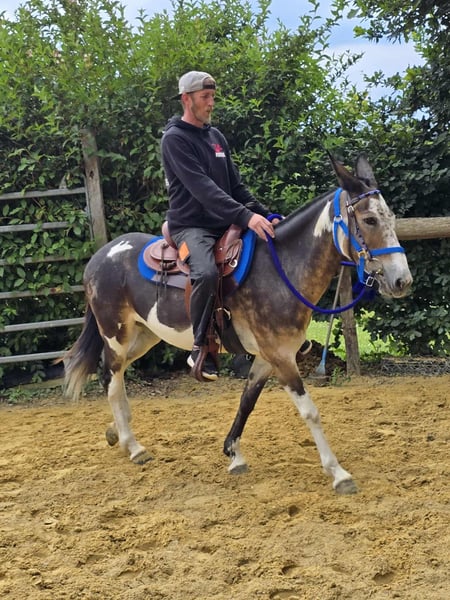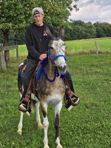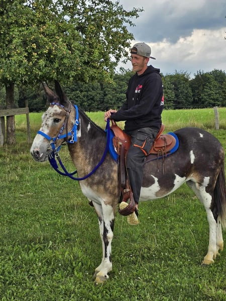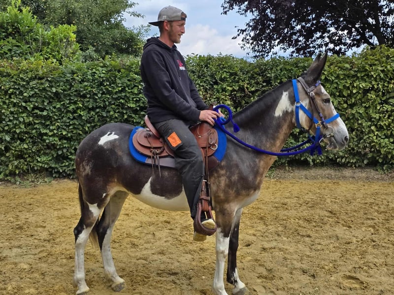 Leisure Mule Mare "for leisure and trail riding" *Age*: 13 years, ridden and driven *Height*: approx. 1.45 m *Equipment*: E-pass, microchip is available *Price*: €5,900 *Ridden and driven* A beautiful mare that is ideal for trail riding and trekking. She is a versatile leisure companion, well-suited for both English and Western riding. She has a great, balanced temperament and feels comfortable in a herd, but is also well-adjusted in a stable. ### *What sets her apart:* - Used to open stable and herd management, box housing is also not a problem - Ideal for leisure and trail riders - Very balanced and uncomplicated to handle *Interested?* Feel free to call us at *0171-4001968* (daily from 8 AM to 8 PM). *Please no emails or WhatsApp, only calls!* *Additional Information:* - Accessories and transport can be organized at a low cost. - Our farm shop offers a small selection of used Western saddles. - *Installment payments are not possible.* *Customer Service:* - Every customer receives a contractually guaranteed *exchange right of three months.* - A trial ride with us is possible, so you can get to know your dream horse. For €35, you can ride, have her ridden for you, go for a walk, or more. If desired, you can also test a second horse for €25. This amount will be deducted from the purchase price of a horse on the same day. *Special Features:* - If picked up immediately with a horse trailer, you will receive *a discount of €100.* - We conduct the sale with a transparent trial ride to ensure that it is the right horse for you. *Legal Information:* - We are the sole and unrestricted owners of the images; the image rights belong to us. *Unauthorized use of the images is prohibited.* - Please note that this is a living horse. Our information is based on the impressions of the caretaker and does not represent guaranteed characteristics. - Advertisements will be deleted immediately once the horses are sold. *Interested?* Feel free to call us at *0171-4001968* (daily from 8 AM to 8 PM). *Please no emails or WhatsApp, only calls!*