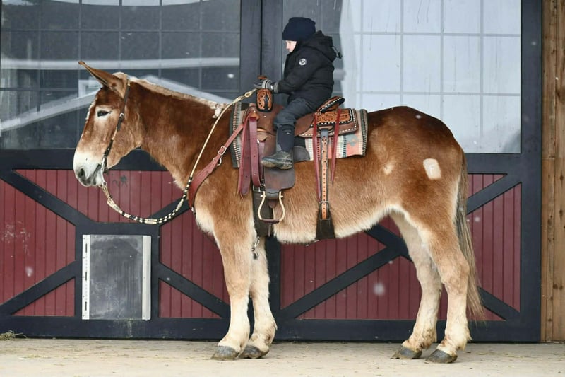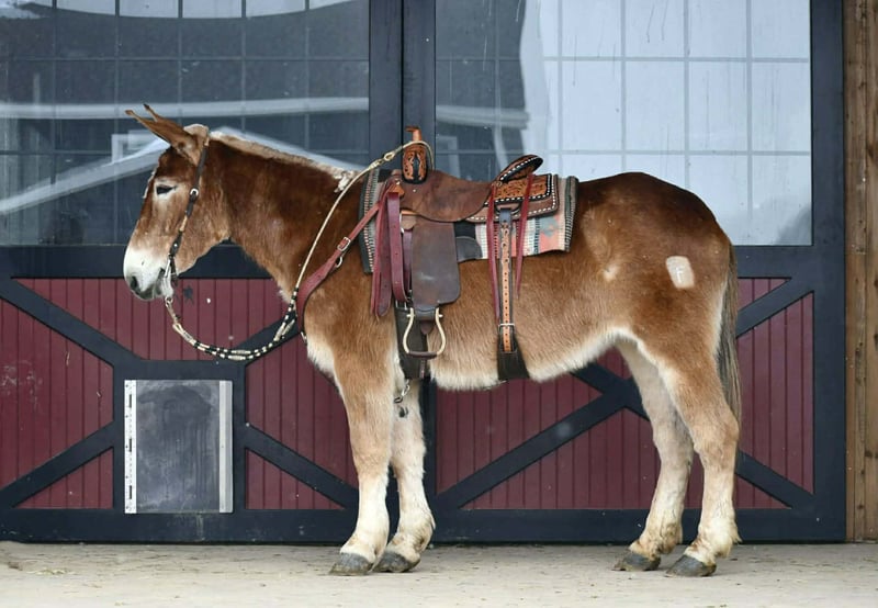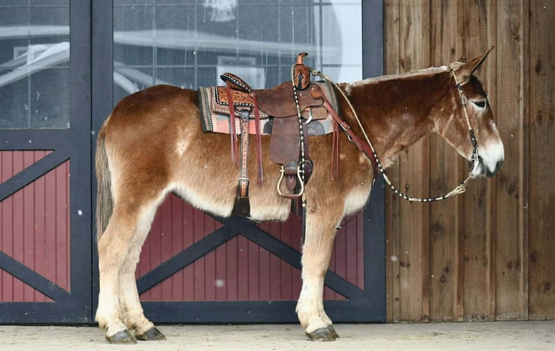 Jolie mule Molly de 14 ans, douce au cavalier et à la conduite!