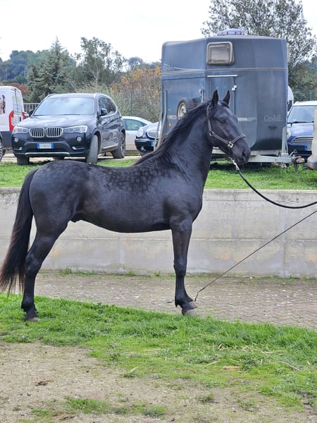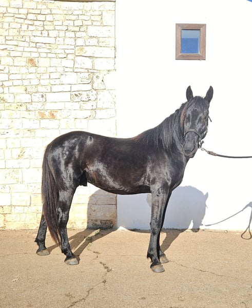 Tindaro was born on April 7, 2023, from Gemma, one of our most important broodmares with outstanding genetics. Gemma descends directly in female line from one of the first mares registered in the breed almost 100 years ago. His sire, Libero di Zappone, owned by the State, is an impressive horse with a baroque conformation, a gentle and friendly temperament, and he passes on smooth, pleasant gaits to his offspring. Tindaro was born into our herd, which comprises about 25 to 30 horses of varying ages, from a few months to over twenty years old. The herd includes mares of all ages, foals of both sexes, and a gelding. Like all our males, he remained in the herd until about 16 to 18 months old. At that point, he was separated and has been living in a large paddock consisting of woodland and pasture, together with other young males and our gelding, who plays an educational role with the young stallions. Currently, he is in the company of our gelding. He is familiar with electric fencing and the stable, which he spends a short time in each day to gradually and pleasantly get used to it. We prefer our horses to always live in large spaces, but we also understand how important it is for them to be adaptable and familiar with the stable, so they feel comfortable if, for any reason, they need to be housed there. Tindaro is not intrusive; he is curious about people but respects personal space, both his own and others’. We have known him since birth and have taught him, through only positive associations, that humans are a point of reference for him and that nothing bad or dangerous happens when people are around. He accepts grooming without issues, knows how to stand tied, and is currently working on picking up his feet, approaching the shower, and injections. We are also working with him on a confident understanding of the trailer, so he can travel calmly to his future owner and for all subsequent trips. We are teaching him, calmly and serenely, to move off at the three gaits, so he can eventually be lunged. Tindaro has smooth, expressive gaits with a natural extension. He is currently 157 cm tall but is expected to surpass 160 cm, as he has just turned two and will continue growing until around five years of age. A Future Together We are looking for a forever home for him, someone who sees the horse as a living being with its own personality and who wants to build a solid, lasting relationship. Someone who understands the fundamental needs of a horse, such as 24-hour access to hay and the opportunity to live in paddocks and in company. We work with positive reinforcement, but also use minimal, non-invasive pressure at the right timing. He has been dewormed and is undergoing his vaccination cycle. Currently, he is entire, but there is the possibility of gelding him here in Puglia, under our supervision at our farm. We are also happy to offer: - Additional videos upon request - Answers and information tailored to your needs - Organizing a veterinary purchase exam suited to your requirements - Hosting you at our farm to meet Tindaro in person - Arranging transport and the necessary documentation Visit our website: https://masseriacapoiazzo.it/ and our social media: Instagram: https://urly.it/3ajhc Facebook: https://urly.it/3ajhd Feel free to contact us for any questions, either here on ehorses or via WhatsApp at +39 346 523 2016. Paola and Giovanni