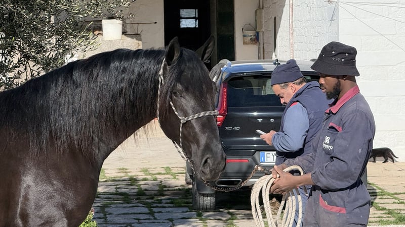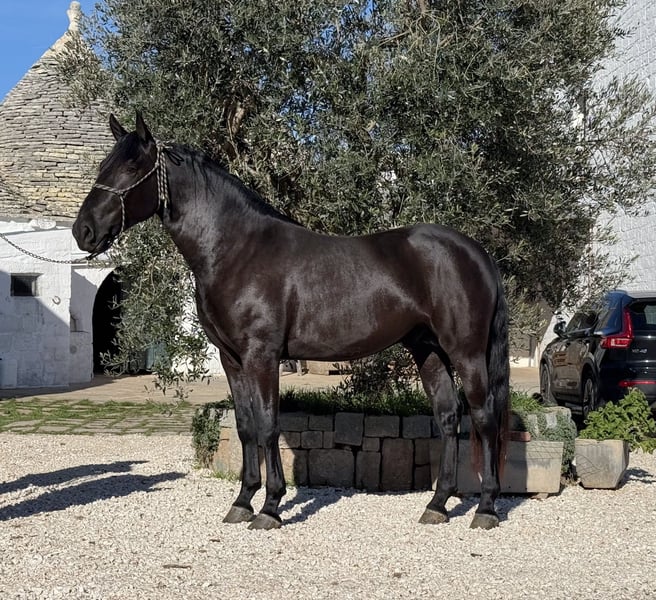 T.F. Proust Thor Ein junger Mann, der das Spielen und Hinterfragen auf eine liebevolle und charmante Weise sehr gut beherrscht. Dabei aber nie unhöflich oder aufdringlich wird. Bei der Arbeit im Roundpen ist Thor äußerst aufmerksam und besteht auf eine feine Körpersprache. Thor ist mit einigen Kumpels in der Herde des Züchters aufgewachsen, von dem aus wir ihn nun auch vermitteln dürfen. Er kennt das Leben auf einer Masseria, was bedeutet: Hunde, Wachgänse, Kühe, Traktoren, nochmal Hunde. Das Jungpferde ABC hat er professionell gelernt und so freut er sich nun auf die weiteren Schritte seiner Ausbildung zusammen mit Dir. Aktuell ist Thor noch nicht kastriert, kann und wird auf Wunsch noch beim Züchter durchgeführt (im Preis enthalten) Geboren 2023, Geschätzt wird sein Endmaß etwa 165 Wer mehr über Thor wissen möchte - wir freuen uns über Deine Nachricht. Röntgenbilder sind vorhanden und bei ernsthaftem Interesse natürlich einsehbar. Ebenso planen wir alles weitere für Dich - klinische Ankaufsuntersuchung, Abwicklung des Kaufvertrages, Transport in Deinen Heimatstall usw. Die Vermittlung des Pferdes erfolgt ausschließlich ehrenamtlich und unentgeltlich im Auftrag des Besitzers (Mitglied im Murgesenverbandes A.N.A.M.F.). Der Vermittler tritt hierbei lediglich als neutraler Mittler zwischen Besitzer und potenziellem Käufer auf.