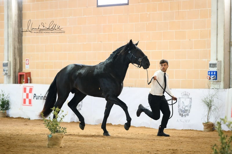 Toto incarne la lignée originelle de cette impressionnante race et possède tout ce que l'on peut attendre d'un véritable cheval baroque : une construction robuste, une apparence élégante et un regard honnête et clair. Nous estimons sa taille finale à plus de 165 cm – il est donc idéal pour les cavaliers qui apprécient la taille et la présence. Toto a grandi en troupeau, connaît l'ABC des poulains et se montre toujours amical, attentif et proche des humains. La castration est possible sur demande sur place. Des radiographies sont disponibles et, bien sûr, consultables en cas d'intérêt sérieux. Nous planifions également tout le reste pour vous – examen clinique d'achat, gestion du contrat de vente, transport vers votre écurie d'origine, etc. Cavallo Murgese.de – sous l'autorité et en collaboration avec l'association italienne des Murges A.N.A.M.F.