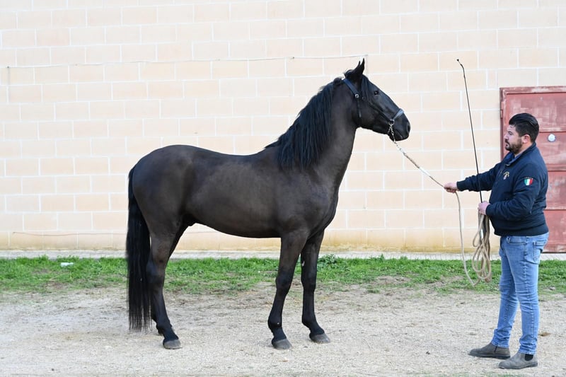 Geboren in 2023, ongeveer 1,58 m groot en nu al een echte blikvanger! Teo is niet alleen zeer goed te hanteren met een halster, maar is voor zijn leeftijd ook uitstekend getraind. Hij toont zich mensgericht, sportief en elegant – een paard met veel potentieel. Hij komt uit een fokkerij die grote waarde hecht aan goed omgang en desensibilisatie. De opleiding gebeurt op een speelse manier en met veel vertrouwen. Heeft Teo uw interesse gewekt en wilt u hem graag persoonlijk ontmoeten? Momenteel staat Teo nog in zijn thuisland, Apulië. Wij helpen u graag bij het plannen van een bezoek. Teo wordt via Cavalli della Murgia aangeboden. Röntgenfoto’s, evenals meer foto’s en video’s, sturen wij graag op aanvraag. De volledige aankoopafhandeling, inclusief keuring en transport naar Duitsland, regelen wij eveneens voor u. Heeft u nog vragen? Stuur ons gerust een e-mail – cavallidellamurgia@outlook.com. We kijken uit naar uw bericht!