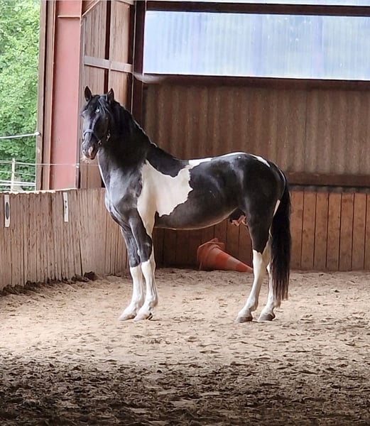 Murgese/Pinto Wallach (geb. 2020) – charakterstarkes Pferd für erfahrenen Reiter Zum Verkauf steht unser Murgese/Pinto Wallach, geboren 2020, eingeritten 2023 und befindet sich seit knapp drei Jahren in unserem Besitz. Im täglichen Umgang zeigt er sich brav und unkompliziert. Bodenarbeit sowie entspannte Spaziergänge machen ihm viel Freude. Auch Tierarzt, Hufschmied und Anhänger fahren sind für ihn problemlos. Im Jahr 2025 hatte er eine periodische Augenentzündung, die in der Tierärztlichen Hochschule Hannover erfolgreich operiert wurde und aktuell keine Einschränkungen verursacht. Unter dem Sattel zeigt er jedoch seinen eigenen Charakter und benötigt einen sicheren, konsequenten und durchsetzungsfähigen Reiter. Da er derzeit von unserer 13-jährigen Tochter geritten wird, nutzt er seine Stärke aus und verweigert gelegentlich die Mitarbeit, indem er beispielsweise rückwärts geht. Aus diesem Grund suchen wir für ihn ein neues Zuhause bei einer erfahrenen Person, die ihm klare Führung geben kann und Freude daran hat, mit einem charakterstarken Pferd zu arbeiten. Der Verkauf erfolgt nicht aus Zeitdruck oder als Notverkauf. Uns ist wichtig, dass er in die richtigen Hände kommt. Bitte melden Sie sich daher nur, wenn Sie sich einem selbstbewussten Pferd gewachsen fühlen und ihm gerecht werden können. Weitere Informationen geben wir gerne bei ernsthaftem Interesse.