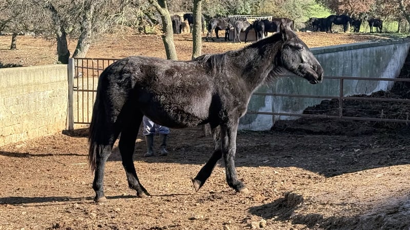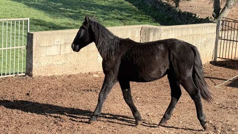 Currently, Ubon is living semi-wild in the herd, as is typical for a Murgese mare. Ursula is 1.5 years old and still quite raw, originally and almost wild, having grown up in Apulia. Ubon appears curious, open-minded, and confident. We estimate her final height to be around 16.1 hh. The mares are kept in a very natural and primitive herd environment. The quality of this traditional breeding program has convinced many Murgese enthusiasts for years. This authentic upbringing is ideal for experienced leisure riders who enjoy gently training a young horse and building a true partnership from the ground up. If you want to meet Ubon directly in Apulia, just let us know. We will also take care of everything else for you – clinical pre-purchase examination, handling of the sales contract, transportation to your home stable, and more. Cavallo Murgese.de – on behalf of and in cooperation with the Italian Murgese Association A.N.A.M.F.