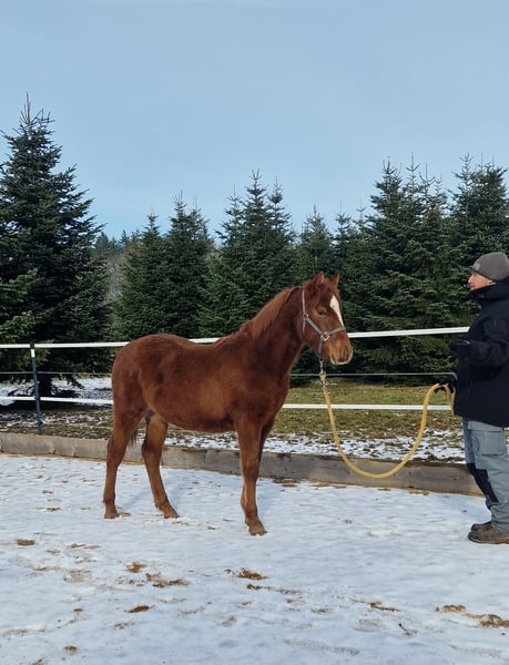 IKO-INFERNO est né tôt le matin. Il a été très rapide dans tout. Rapide sur ses pattes, rapide à téter et rapidement très sociable. Déjà maintenant, il part seul à l'aventure. Iko grandit de manière robuste au sein du troupeau. Les jeux quotidiens développent ses muscles, son endurance et ses poumons. Il travaille également son équilibre et son comportement social. Son père est le premier étalon Mustang approuvé et testé en performance en Europe. Sa mère est une véritable rareté, car il n'y a que très peu de Kigermustangs noirs dans le monde. Elle est également à vendre, car nous devons arrêter complètement pour des raisons de santé. Vous trouverez d'autres chevaux à vendre sur notre site internet. www.a1-suffield-mustang.de