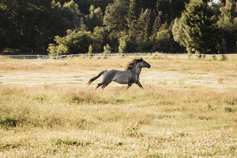 Rocky is a very friendly and people-oriented stallion. He passes on his beautiful movements to his offspring. Rocky has a strong, correct foundation with large and hard hooves. On our website www.a1-suffield-mustang.de, you will find pictures of his offspring as well as other Mustang stallions. His offspring always come with papers. If you are looking for a special color, he is the right one. He always passes on the dun gene (two-colored mane, zebra stripes, and dorsal stripe) and does not produce red. a/a D/D E/E The breeding fee for other breeds is 1000 euros, for Mustangs 2000 euros.