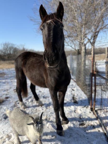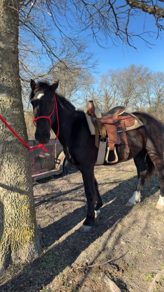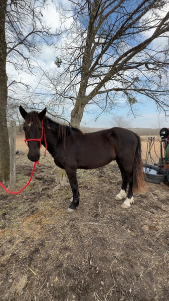 Jeune hongre Mustang noir de 4 ans. Non confirmé en compétition. Aucun vice, extrêmement gentil.