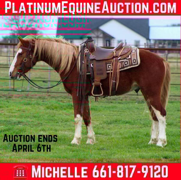 ONLINE AUCTION Place your bids at www.PlatinumEquineAuction.com Starting Bid $3500 Auction ends April 6th, 2025 Need a new saddle? Check out White Rock Saddles on our website or Facebook! Here’s your chance to own a piece of American History! Meet Tomahawk, a charming 4-year-old branded mustang gelding who stands at a perfect 14.0 hands tall. With all the beautiful chrome you could ever want, he’s not just a looker—he’s a sweetheart too! Tomahawk has the kind of easy-going personality that makes him a joy to be around. Always eager to please and ready to learn new skills, he’s the perfect partner for anyone looking to bond with a horse and grow with. Tomahawk has had an excellent start and has been exposed to a variety of experiences. He’s been used weekly to pen back cattle at the sale barn and bring up roping steers at the practice pen. His skills include walk, trot, and loping circles, and he’s soft in the face, breaking at the pole nicely. Whether you’re riding down the trails or taking a stroll through town, Tomahawk is up for the adventure! This gentle guy is ready to find his lifelong partner—could that be you? He’s also gentle enough for a handy kid looking to train their next winner, making him a fantastic choice for aspiring young riders. Need help with transport? No worries at all! We have a list of reputable haulers who can get Tomahawk safely to your doorstep, whether you’re in Alaska, Mexico, Hawaii, Canada, or anywhere in between. Don’t miss out on this incredible opportunity to bring Tomahawk into your life! For more info contact M $ Performance Horses Michelle 661-817-9120 Located in Stephenville, TX. ONLINE AUCTION Place your bids at www.PlatinumEquineAuction.com Starting Bid $3500 Auction ends April 6th, 2025 Need a new saddle? Check out White Rock Saddles on our website or Facebook!