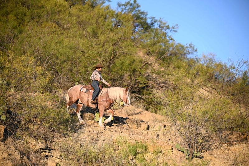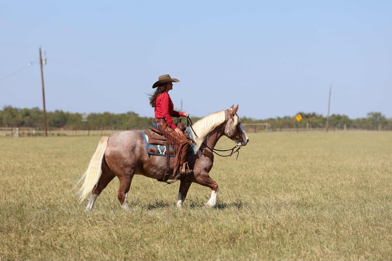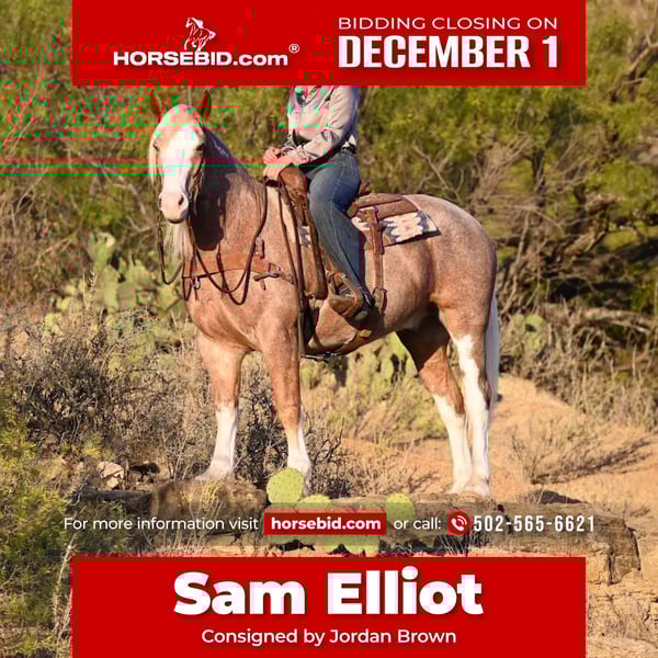 ⚜️ 𝓽𝓱𝓮 𝐇𝐨𝐫𝐬𝐞𝐦𝐚𝐧'𝐬 𝓢𝓱𝓸𝔀𝓬𝓪𝓼𝓮⚜️ Happening now thru MONDAY | DECEMBER 1st - Available EXCLUSIVELY on HorseBid's website! For more details and to register visit: www.Horsebid.com CONSIGNOR CONTACT: Jordan Brown 502-565-6621 LOCATION: Georgetown Texas BREED: Mustang REGISTERED: No COLOR: Red Roan HEIGHT: 14.3 AGE: 6 GENDER: Gelding Sam Elliot was dubbed his famous name because of his old school cool attitude and authentic western look. With golden locks of shoulder length mane and a forelock to his nostrils he is undoubtedly a lady’s man sure to steal the hearts of anyone who sees him! Unfazed by traffic, dogs, lights, and commotion he is a terrific mount for parades, shows, and paydays! He’s been there and done that with a resume full of long hard days working cattle on various ranches across the Texas panhandle. Trails are his specialty and you won’t find a more sure-footed and brave horse to take you over through and across any terrain you can muster! Has a gliding trot easy to sit or post and will lope right out of his tracks if asked. Elliot prefers a nice easy going pace and will ride anywhere in the group or boldly out alone. Neck reins or direct reins, has been hacked around in English tack as well with zero defiance. Side passes to open and close gates, backs off the trailer, loves a good warm bubble bath and cookies! Looking for his forever family!