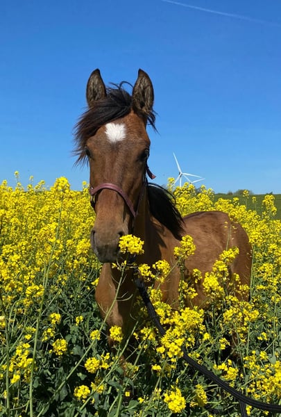 Leia est une petite jument sympathique qui cherche la proximité avec les humains. Elle est remise avec les papiers complets et l’approbation de reproduction ainsi que poulain abc. Leia est testée pour les maladies génétiques ainsi que sa couleur. Nous sommes impatients d’avoir de vos nouvelles et d’apprendre à vous connaître!