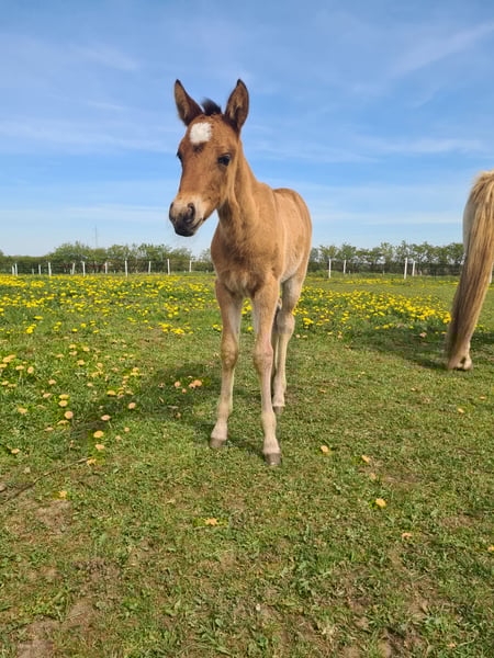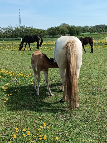 Leia is a friendly little mare who seeks closeness to humans. She is handed over with full papers and breeding approval as well as foal abc. Leia is tested for genetic diseases as well as her color. We look forward to hearing from you and getting to know you!