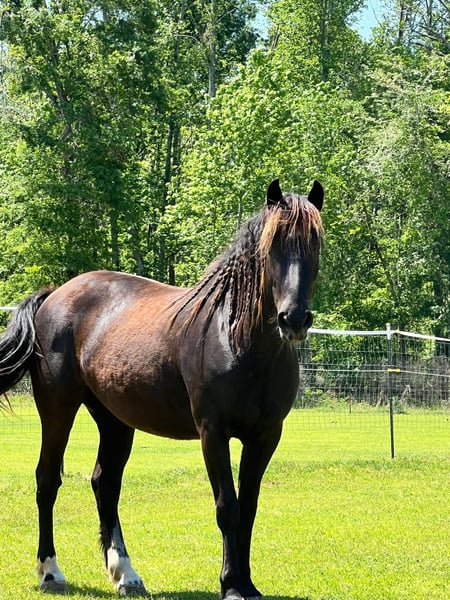 Buying a true American Mustang means so much more than just "buying a horse." At Wild Mustang Ranch, we have made it our heartfelt mission to give these impressive wild horses – who are captured in the USA due to overpopulation – a second chance and to find them loving, appreciative homes. We have already trained and placed over 450 wild Mustangs, and all have benefited from our love, our listening, and our care. Our training ensures that the Mustangs, who leave our ranch after at least a year, can be excellent companions for their new partners. We also offer on-site support for you and your Mustang. We speak German and English. BLACK BEAUTY - another rough diamond! She is characterized by remarkable curiosity, which she consistently demonstrates during training. This trait is particularly valuable as it indicates a strong willingness to learn and openness to new experiences and challenges. Black Beauty approaches every new exercise or task with an attentive and interested gaze, as if she is always eager to expand her knowledge and skills. In dealing with Black Beauty, it quickly becomes clear that she is a horse that seeks to be challenged both physically and mentally. Her curiosity drives her to constantly learn and improve, while her compact stature gives her the necessary strength and agility to successfully implement these learning processes. Thus, Black Beauty is a horse that impresses not only with her appearance but especially with her eagerness and willingness to learn. Suitable for people with more horse experience who wish to further train her. She can leave at any time. ---Follow us on Facebook to keep up with all the news about Black Beauty.--- https://www.facebook.com/wildmustangranch/ ------- Are you interested in a first meeting with Black Beauty via a personal video call? We would be happy to introduce her to you live and answer all your questions. If you want to experience her on-site: Our ranch in the USA has cozy guest houses waiting for you – and we are happy to assist you in organizing your visit. We look forward to your message! ***Has your heart said yes? We will find a solution together regarding the price. Rely on our experience – we take care of the entire process and support you every step of the way.