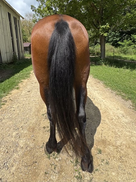 I need this one moved ASAP! Meet Rose, an 8yr 14:1hh fully titled Mustang who is also registered with NAMAR. She is very sweet and friendly and has no health problems. Rose is green trained with a solid walk/trot under saddle. She has had a few canters under saddle but is still new to it. She has never bucked, reared, bolted, but can be looky. For the sole reason of being under-experienced, she would do best with an intermediate+ rider who is not a total newbie. Rose is light on the bit and will move off of leg pressure to an extent. She could really excel in eventing, but would also do well in other disciplines. She is careful about knocking poles and has jumped 3.5ft with room to go higher! (*Free jumping, not under saddle*) Rose has been ridden western, english, and bareback and been on a few trail rides so far (with an experienced buddy) where she has crossed water and logs. Rose is easy to catch, stands tied (regular + cross ties), is good with fly spray and picks up all 4 feet and stands for farrier, though she is still working on it and can move around a bit. She is a great balance of whoa and go! Not lazy by any means, nor is she hot. She will get a little more forward on trails but it’s not unmanageable. While not 100% bombproof, Rose is sensible and BRAVE! Her go-to is to walk towards the scary thing! She has never once tried to stop at a jump, no matter how funny it looks. You point her at it and she’s all game to give it her best! Please Note: ⭐She has had all 4 hooves trimmed since taking the pictures. ⭐She has an old scar on the neck, and a newer one above her eye. Both are pictured and neither one bothers her at all. ⭐While currently barefoot and sound, she does have thin soles. This does not make her lame, but makes her more susceptible to bruising when on rocks or under heavy work. For reference: she has bruised one of her soles once over the past 15 months I’ve had her, and it made her lame on hard surfaces only for about 3 days. I have current X-rays and can confirm she has super angles and absolutely no rotation. Her hooves are hard, resistant, and healthy! She’s never had thrush, abscesses or any other kind of infection etc. And she lives in a wet, wet valley 24/7. The vet said that putting shoes on her should bring her possibility of getting bruises way way down. ⭐She has some insecurities that we are working through which makes her a tad bit herd bound. Nothing crazy and she’s getting better about it every day! She is easy to catch, and I ride her in the arena alone. I have not tried taking her out on trails alone. The main thing is that when something makes her nervous (a loud truck goes by etc.), she will try to find comfort in the herd. She will paw if tied when this happens. It’s not unmanageable or dangerous by any means. Rose is a sweet mare, with tons of potential. With the right person, she could easily turn into a 30k horse. PPEs are welcome at buyer’s expense. I’m not holding anything back with this mare. A good fit is important to me so ask any questions you have! I am currently considering all offers as I don’t have the space and need to get her moved soon. Come meet her - you’ll love her! I would consider a trade for: ⭐Mare or gelding around the same size ⭐No spook & can take a joke. ⭐Been there - done that type with a little go when asked. ⭐Not buddy sour/ can ride out on trails alone. ⭐Older is ok, but no health concerns. Message/Text/Call me with any questions!