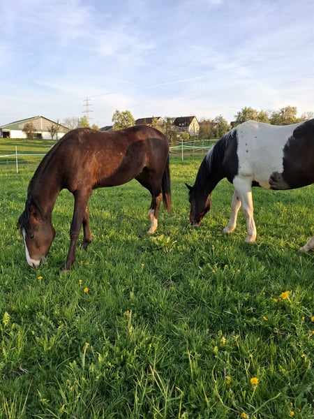 Vendemos potros Mustang x Mustang criados en Alemania cada año. Bien socializados, manejados con cabezada, con ABC de potros y más. Potros a partir de 5500€ dependiendo del color como destetados. También hay caballos mayores, con y sin entrenamiento, disponibles de vez en cuando. Precio según nivel de entrenamiento y edad. Ofrecemos nuestros sementales para cubrir en monte natural también para yeguas externas a solicitud. Ofrecemos plazas de cría para tu potro que compres con nosotros. ¡Los sementales se dejarán más tarde! Mantenimiento en grupo en establo abierto con salida a pasto diariamente. Criadero familiar aficionado con corazón y sentido. www.mustangzucht.com Saludos cordiales, Familia Schnell de BW 74635 Kupferzel.