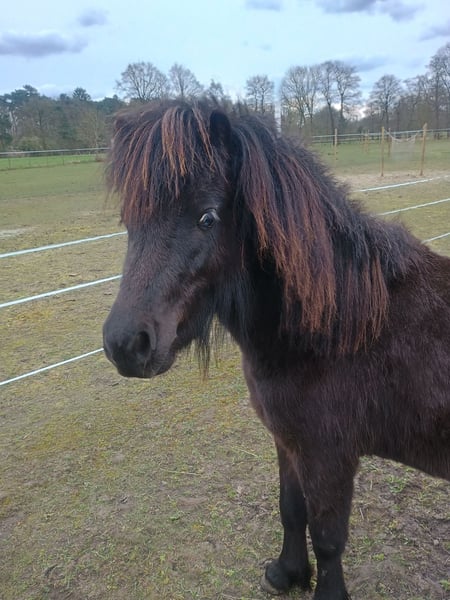 Raka Waka V.D. Hermanshoeven Geboren: 24/04/2024 Kleur: zwart met blauw maanoog en unieke witte wimpers. Hoewel Raka visueel bijna volledig zwart is, wijzen zijn blauwe oog en de witte wimpers sterk op de aanwezigheid van een witpatroon-gen. In Raka zijn afstamming zit veel diversiteit aan kleuren, dus hij kan zeker geschikt zijn om ook te dienen als dekhengst voor kleur. (Zeker de moeite om eventueel een kleurentest te doen) Hoogte: Raka zal rond de 95cm worden Moeder: Moon V.D. Magrid (bruin) Vader: Las Vegas Of The Fairytale Ranch ( vos-tobiano) Raka is een hengstje en zou kunnen gebruikt worden als dekhengst, hij zou ook keuringen en voor een karretje kunnen lopen. Hij is nog jong dus kan nog veel leren. Raka heeft echt een karakter😁. Vraagprijs €600, eventueel bespreekbaar Intworming en vaccinaties volledig in orde. Voor meer info of interesse stuur naar: 0493 76 33 64.
