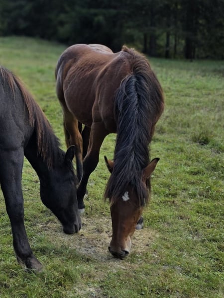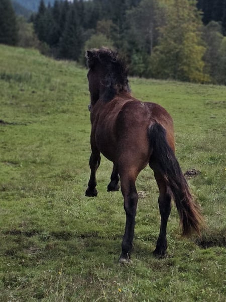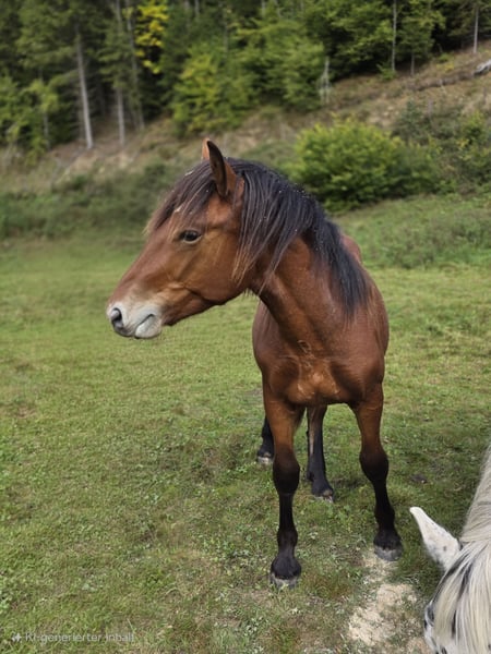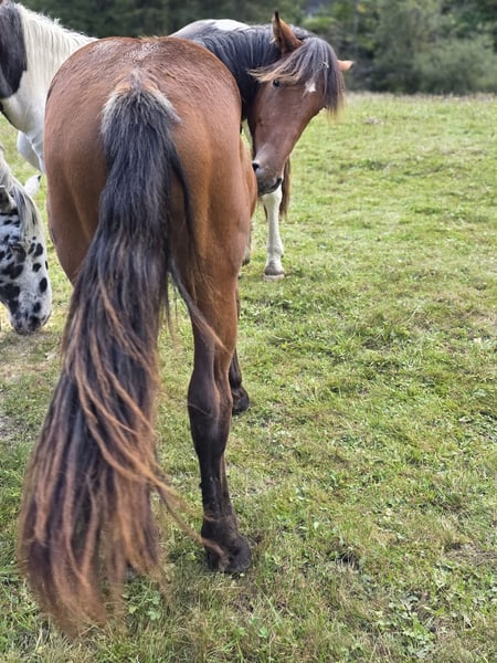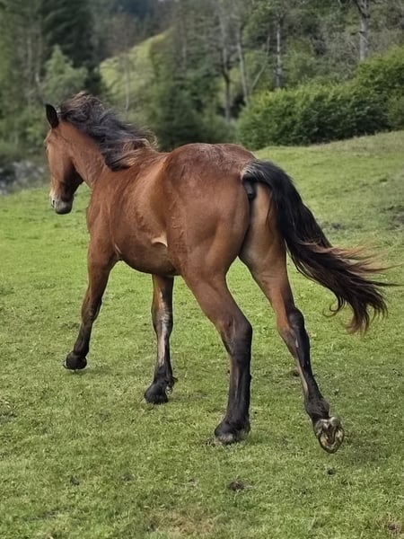 Wer auf der Suche nach einer braunen Perle fürs Leben ist, ist bei Tamino Vulkan genau richtig. Tamino ist am 02. 05. 2024 geboren. Tamino hat das Herz am rechten Fleck, ist gutmütig, gelehrig und sehr verschmust. Tamino hat bereits 2 Sommer in der Herde auf der Alm verbracht, was ihm Trittsicherheit und Robustheit bringt. Mit seiner wunderschönen braunen Farbe und den schwarzen Beinen ist er ein echter Hingucker. Sein Vater ist Tajfun Vulkan, ein toller, bewegungsstarker Kuhschecke und seine Mutter eine Rappstute mit Traum Charakter (2a). Ich bin überzeugt, dass Tamino ein perfektes Freizeitpferd wird, an dem man schnell sein Herz verliert. Tamino ist noch Hengst, er wird mind. 165 cm groß werden. Bei Interesse an Tamino gebe ich gerne weitere Auskünft, Preis auf persönliche Anfrage.