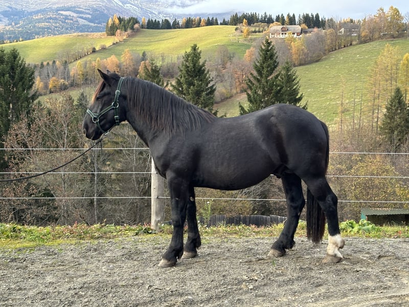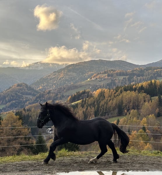 Hello, we are looking for a new home for our Georg through this platform. His temperament is characterized by his calm and gentle nature. He was bred by Glücklicher Elmar and maternally descends from Vötter Vulkan. Georg was born on March 1, 2023. He is a sturdy Noriker stallion and is likely to grow a bit more due to his age. His distinguishing feature is his white left hind leg. We would be very happy to find a wonderful home for him.