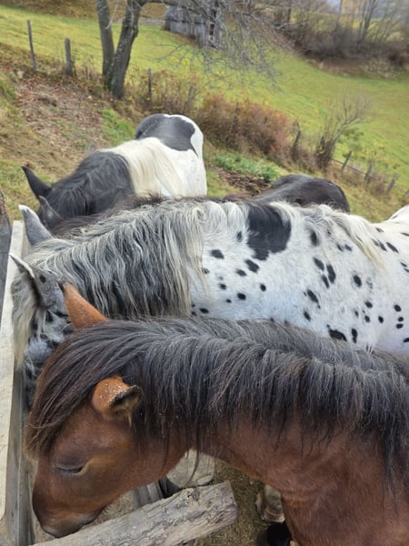 Jury Elmar, hijo de Jumbo Elmar y Maike (HM), por Focus Elmar, es un hermoso potro joven de la raza Noriker, nacido el 27 de marzo de 2023, en el codiciado y poco común color tigre con un hermoso patrón de marcas. Jury es libre de PSSM, está vacunado contra la gripe y el tétanos, y desparasit ado regularmente. Es tranquilo y obediente con el herrador (ya ha sido herrado) y se deja cargar sin problemas. Jury siempre ha sido criado con otros caballos de su edad, mostrando una gran compatibilidad y carácter sociable. También permanece tranquilo solo sin inconvenientes. Aún no ha sido montado ni trabajado en la cuerda. Deseo para Jury un hogar donde pueda seguir siendo desarrollado acorde a su edad. Se ofrece en venta por reducción de la manada. Seguro será un excelente caballo de ocio para la equitación o el tiro, habiendo adquirido la confianza necesaria en la montaña. Quien desee cumplir su sueño de tener un Noriker con marcas de manchas negras, puede ponerse en contacto conmigo. Dado que el tiempo es muy valioso, solo se atenderán solicitudes serias. Gracias.