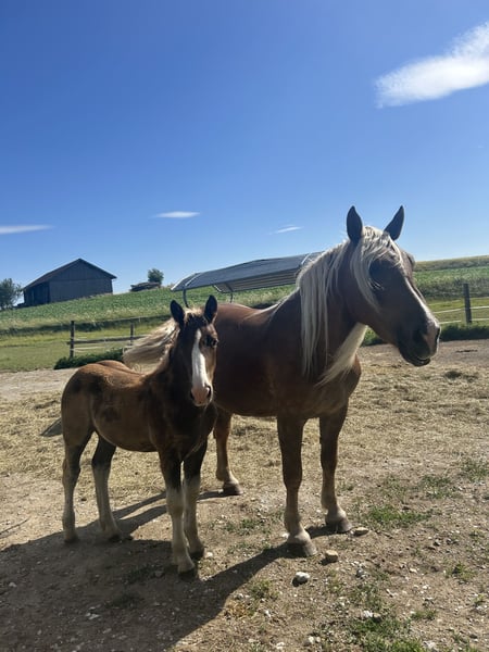 À vendre, le vainqueur de la réserve régionale des poulains de Noriker en Basse-Autriche 2025. Ce poulain très charmant, issu d'une famille maternelle exceptionnelle, recherche une nouvelle famille ! Sang de Galileo Diamant XV - Twingo Vulkan XVI Mère : jument primée d’État, Lucy Vainqueur de la sélection régionale 2023 en Basse-Autriche avec des notes maximales Vainqueur de l’examen de performance 2024 en Basse-Autriche Deuxième reserve de la compétition de chevaux de sport en Basse-Autriche 2024 Vainqueur de la réserve à la présentation nationale des jeunes juments de Noriker à Stadl-Paura 2024 Galando est parfaitement éduqué, connaît le transport en van, et accompagne déjà lors des balades à cheval. Un poulain correct, doté d’un bon mouvement et très proche de l’homme, prêt à rejoindre sa nouvelle famille à tout moment.