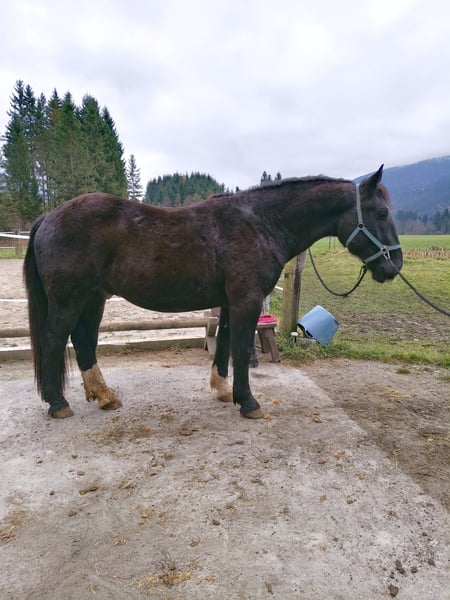 Brave and tall Noriker gelding. PSSM-negative! Regularly dewormed, tetanus vaccinated, teeth done in 10/2025 including wolf tooth removal, accustomed to box and open stable, summer grazing, regularly presented to the farrier. Familiar with groundwork.