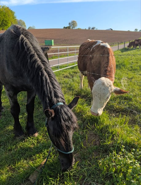 If everything fits, I am selling my almost 4-year-old Noriker gelding in the color Mohr head / blue roan. Height: 1.64 m (16.1 hh), weight: 710 kg. Sire: Maybach R. Nero He has been with me since he was 8.5 months old and has therefore not had any negative experiences with people or similar. He is very social, fearless, extremely people-oriented, and is also familiar with large farm machinery. - Lunged (walk and trot, canter balance still developing) - Accepts rider’s weight without any issues - Very confident in the terrain, even when ridden alone - Ranks high in the herd, but fair and never malicious - Very cuddly - Enjoys working and wants to please; learns new things very quickly (as long as the training is fair) - Never been ill - Completely unspoiled, as I have given him all the time he needed for everything - Foaled in Austria - Handles all four hooves willingly - Absolutely calm in the trailer, loads easily - Heart horse - Knows both arena and outdoor riding, with no issues in either - Housed in an open stable; he needs space to stay balanced. He is familiar with a box stall, but that would not be suitable for him I will only sell him if everything truly fits. He is also available for lease, but that would be tied to the stable (postal code 66564). NO EMERGENCY SALE!
