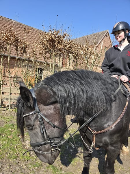 For sale is a 5-year-old black Noriker gelding with an approximate height of 16.1 hh. Pedigree: Sire *Eisenhut Nero*. The gelding is backed and currently being worked in leisure riding. He is familiar with dogs, other animals, children, and road traffic, and generally remains calm and fearless in these situations. He has a relaxed temperament but requires a clear, consistent handler with assertiveness. Without proper guidance, he can become stubborn and somewhat reluctant to work, so regular, meaningful activity is essential. He also needs mental stimulation. He is absolutely compatible with other horses and is used to both box and open stable management. In daily handling, he proves to be reliable: * Shoeing-friendly * Loading-friendly No health issues are known. Due to his temperament, he is particularly suitable for carriage drivers or experienced leisure riders who have prior experience working with young horses. Accessories can be included. The gelding is currently available in Beckum. **Location: Beckum**
