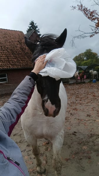 Te koop: Noriker-ruin – ideaal voor recreatief gebruik! Met pijn in het hart... ik weet dat veel mensen dit schrijven... overweeg ik mijn mooie Noriker-ruin Samson een goede nieuwe eigenaar te geven. Hij heeft een bijzonder kleurpatroon. Officieel is hij een vos-zwartbonte, maar op zijn achterzijde en ook in zijn gezicht is duidelijk dat zijn moeder een tigerbonte was. De stippen worden steeds duidelijker zichtbaar. Het is waarschijnlijk dat hij van kleur nog iets zal veranderen. Hij is eigenlijk een pintaloosa. Ik heb hem oorspronkelijk gekocht om hem op te leiden tot therapiehond. De basisvoorwaarden daarvoor zijn zeker aanwezig. Helaas is hij met een schofthoogte van momenteel al 170 cm voor mijn doeleinden te groot. Hij staat samen met een IJslander en toont zich zeer sociaal. Hij beschikt over drie mooie basisgangen. Met de juiste opleiding denk ik dat hij ook dressuurproeven kan rijden. Hij heeft plezier in het werk en wil altijd graag gefallen. Hij wordt regelmatig door de hoefsmid en tandarts verzorgd. Hij is aangezad en ook het rijden wordt actief geoefend. De basisvoorwaarden zijn er zeker al. Vanwege zijn leeftijd moet hij echter nog veel leren. Mijn jonge kinderen weten precies waar zijn favoriete knuffelplek is. Hij geniet ervan geknuffeld te worden. Hij toont zich zeer sociaal met andere paarden. Toch is hij een echt speelkameraadje. Alles wordt aangebeten of uitgeprobeerd. Zijn orale fase is nog niet voorbij. Meer foto's of zelfs video's stuur ik graag op verzoek. Ik zou heel graag een plek vinden waar hij een zinvolle taak krijgt en waar men zijn potentieel waardeert.