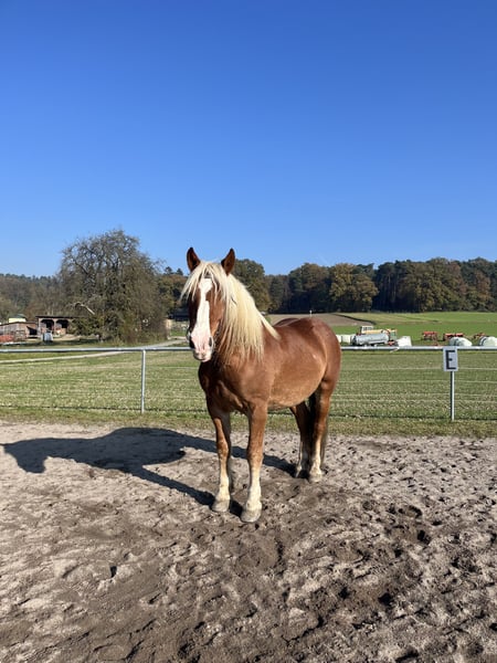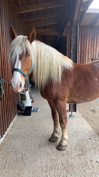 Zum Verkauf steht ein Noriker Wallach, 7 Jahre alt. Er ist angeritten und kennt bereits die Arbeit an der Longe. Charakterlich ist er norikertypisch – aufmerksam, charakterstark und arbeitswillig. Er braucht viel Beschäftigung und konsequente Arbeit, damit er ausgelastet ist und sich gut weiterentwickeln kann. Aufgrund seines Charakters und Ausbildungsstandes ist er kein Anfänger- oder Kinderpferd und wird nur in erfahrene und verantwortungsvolle Hände abgegeben. Bei Interesse oder für weitere Informationen gerne melden.