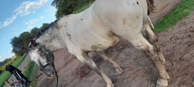 Noriker Gelding – Ideal for Leisure Riding For sale is a Noriker gelding, born in 2018. He has been in my possession since foalhood. Under saddle, he demonstrates that groundwork and lunging are not his favorite disciplines. He really enjoys free work, ground work, and classical dressage exercises. His favorite activity is relaxed hacking, usually accompanied by a lead pony. He’s too good to just stand around and is definitely not fully utilized with me. My focus is more on dressage training, including leg-yield and similar exercises, which is not really his thing. I can easily see him going on trail rides, being trained as a driving horse, or used for forestry work. Fichtel is not yet fully trained; he walks basic gaits under saddle. This is due to a long, injury-related break of two years. He suffered a condylar fracture of the hock. X-rays of his front legs show the fracture as well as early osteoarthritis for his young age. Since mid-last year, he has been retrained and shows no lameness. Unfortunately, he has had no training over the winter. Regularly dewormed, hoof care done, barefoot, vaccinated, and with a dental passport. No dealers or riding schools. Price is secondary; it’s more about the right fit. Please feel free to contact me if you’re interested or have further questions. This special horse is looking forward to a new, loving owner family.