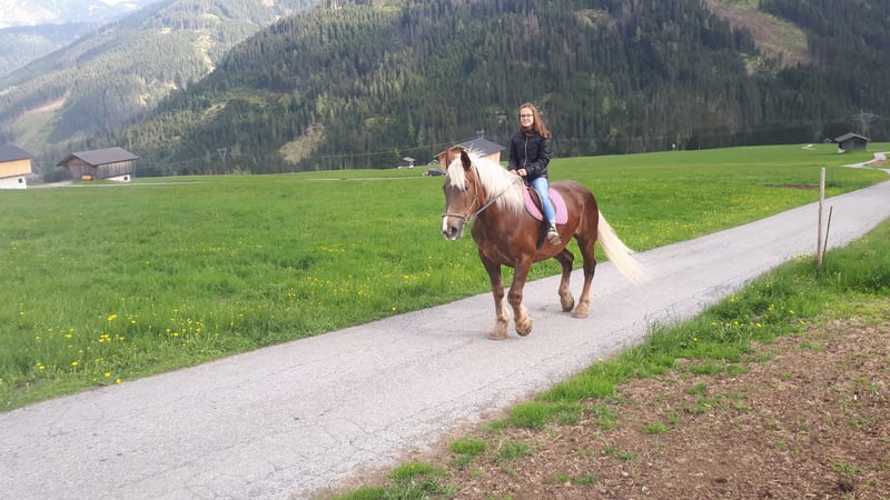 Grande, incinta, bella, cavalla Noriker-Kohlfuchs, criniera bianca, 14 anni, 2A, super line, 7,89 punti, 100% corsa, treno, ferratura e su strada, guidato da uno e due cavalli. Per ulteriori informazioni, non esitate a contattarci telefonicamente!