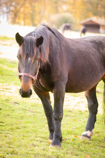 Wir suchen ein neues Zuhause für unsere Noriker-Stute Kalinka. Die am 30.03.2007 in Österreich geborene Stute wurde von uns im Oktober 2025 auf einer Schlachtfohlenauktion zusammen mit 4 anderen Pferden gerettet. Bei uns zeigt sie sich neugierig und liebevoll. Sie steht bei uns zusammen mit einer großen gemischten Gruppe im Offenstall und genießt die Weidezeit. Sie hängt viel mit unserer anderen Noriker-Stute zusammen. Sie ist eher ranghoch, aber nicht unfair. Vieles ignoriert sie einfach. Vom Vorbesitzer wissen wir leider nicht viel zu ihrem Ausbildungsstand. Wir haben bis jetzt nur gemütliche Schritt-Ausritte getestet, dies meistert sie mit Bravour! In erster Linie war Kalinka in der Vergangenheit Zuchtstute, wurde aussortiert, weil sie nicht mehr aufnahm. Kalinka ist Menschen gegenüber aufgeschlossen, lässt sich überall berühren und fasst schnell Vertrauen. Wir bekamen sie mit einem schlechten Hufzustand und mussten eine chronische Hufrehe bei ihr feststellen. Aktuell wird ihre Fehlstellung mit einem orthopädischen Beschlag korrigiert, die Behandlung zeigt bereits Erfolg. Trotz chronischer Rehe geht sie unter Beobachtung mit unseren anderen Pferde auf die Weide. Bei gutem Management ist täglicher Weidegang bei ihr kein Problem. Wir wünschen uns für sie ein neues Zuhause mit eigenen Menschen, wo sie das Pferdeleben richtig kennenlernen kann. Wir sind ein Tierheim für Großtiere. Alle unsere Schützlinge werden nach positiver Vorkontrolle und gegen eine Schutzgebühr vermittelt. Gerne können die Tiere nach vorheriger Terminabsprache bei uns auf dem Hof besucht und kennengelernt werden.
