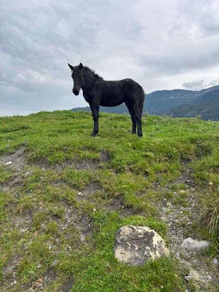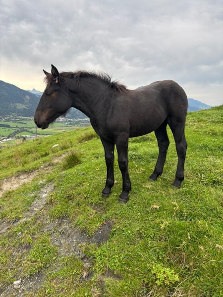 La nostra puledra Noriker Florina, nata il 2.05.2025, cerca una nuova casa, madre: 2a, padre: Manto Diamant, conosce l'ABC dei puledri.