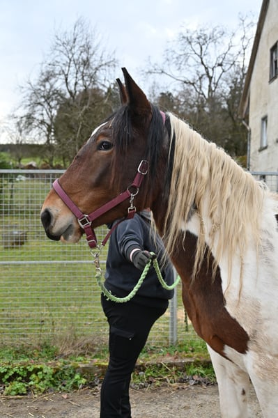 Baileys ist eine bezauberndes 2,5 Jahre alte Noriker Kuhscheck Stute, die ca. 160-163cm gross werden wird . Sie ist am 11.04.2023 geboren und darf artgerecht in einer schönen Noriker Herde Leben und erfahrungen sammeln. Baileys ist sehr interessant für die Zucht wie auch als Freizeitpferd. Sie ist freundlich und aufgeschlossen, sie beherscht das Jungpferde ABC, Baileys kennt zudem Hofmaschienen, Rinder, Hühner, Alpakas, Kleintiere, tobende Kinder, Autos und Hänger fahren. Baileys ist regelmässig entwurmt, geimpft, hat volles Zap Papier mit einer guten Abstammung. V: Eisenhut Nero MV: Tomi Vulka