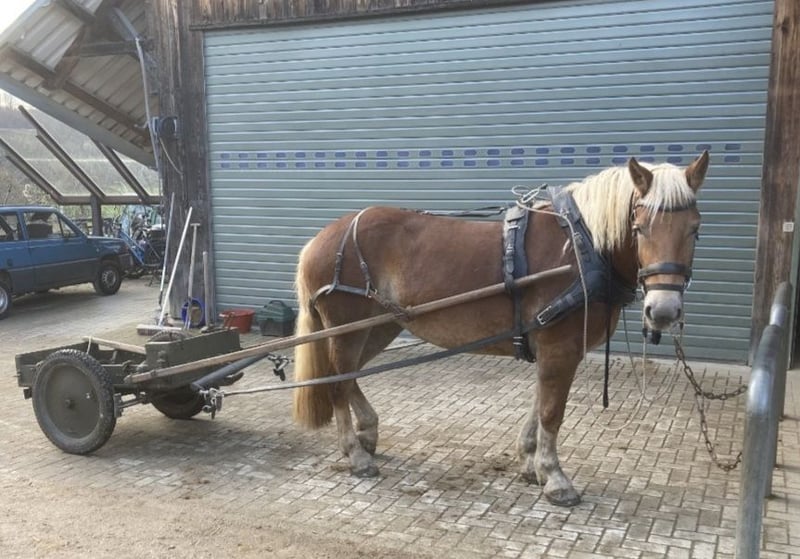 I am selling my 3.5-year-old Noriker mare Fiona for personal reasons. She was born in May 2022. She is in excellent health with an current height of 153 cm. She is friendly and easy to handle. She is familiar with tractors, dogs, and children. She is farrier- and loading-safe. Sire: Giovanni Diamant XVI Dam: Fabella Training level: - Age-appropriate education - Ridden for leisure - Driven from the ground - Normal barefoot, shod due to training - Dewormed - Eczema-free - PSSM-free