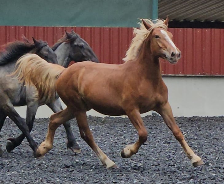 Dieses hübsche, Majestätische Dunkelfuchs Noriker Stute sucht ihren Menschen. Larissa ist am 05.02.2023 geboren und wird somit 3j. alt. Sie wird ca. 163-165cm groß werden. Larissa ist selbstbewusst, freundlich und beherrscht das Jungpferde ABC gut. Putzen mag sie sehr sie bleibt brav und ruig stehen. Larissa kennt wie alle meine Pferde, Kinder, Katzen, Rinder, Alpaka, Hofmaschienen, Autos und Hunde. Sie war mit ihrer Mutter den ersten Sommer auf der Alm, bei uns lebt sie artgerecht in der Gruppe und war jeweils über den Sommer draussen. Larissa hat einen sehr schönen, raumgreiffenden Trab. Sie ist regelmässig entwurmt, gechipt und gechipt. Larissa hat ein volles Zap Papier und ist für alle Spaten sehr interessant. V: Balisto Nero MV: Engelbert Vulkan