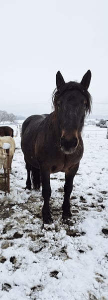 Zum Verkauf steht eine 9 jährige Noriker Stute Steckbrief: Rasse : Noriker Alter: 9 Jahre Geschlecht : Stute Stockmaß : ca 1,55 m Farbe : braun Ranghoch Derzeit vorne beschlagen Zähne , Impfung aktuell Bei den Vorbesitzer wurde sie ein-und zweispännig gefahren. Unter dem Sattel ist sie bereits geritten, und benötigt hier weitere Förderung. Bodenarbeit sowie klassische Platzarbeit liegen ihr weniger , dafür bringt sie Voraussetzungen für den Fahrsport mit . Sie ist kein Anfänger Pferd, sondern eher für jemanden geeignet, der sie entsprechend Ausbilden möchte oder ihren Schwerpunkt im fahren sieht. Sie ist eine verschmuste , freundliche aber Meinungsstabile Stute. Braucht deshalb einen konsequenten Menschen mit klarer Führung der Erfahrung mit Pferden hat . Kennt Offenstall, sowie Nachts Box. Steht in einer gemischten Herde. Bei Interesse , weiteren Kutsch - Videos, Bildern und Fragen gerne melden
