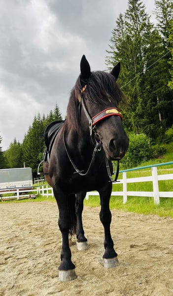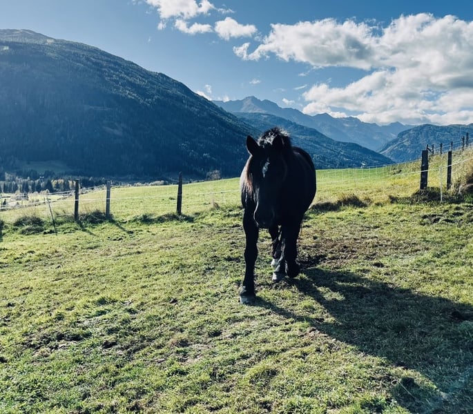 Bei passendem Zuhause darf unsere Leistungsprämienstute Sunshine DS (geb. 20.04.2017, nach Primus-Angelo XV Elmar) gemeinsam mit ihrem Stutfohlen (geb. 05.03.2026) in fördernde Hände wechseln. Sunshine überzeugt nicht nur durch ihre Qualität, sondern auch durch ihre Vielseitigkeit und ihren hervorragenden Charakter. Zucht & Leistungen • 2020 ins Stutbuch eingetragen mit der Wertnote 7,59 (2a) • Leistungsprüfung Oktober 2023 mit der hervorragenden Wertnote 7,92 erfolgreich absolviert Erfahrung & Ausbildung • Teilnahme an Veranstaltungen wie Georgiritt, Erntedank, Pfingstfest (inkl. Aufführungen) • Erfahren bei Wanderritten in großen und kleinen Gruppen • 1- und 2-spännig gefahren 💛 Charakter Sunshine überzeugt mit einer sehr aufmerksamen, sensiblen Art. Sie besitzt viel Go, welches jederzeit gut kontrollierbar ist. Eine SEHR leistungsbereite, verlässliche Stute mit angenehmem Temperament und hoher Lernbereitschaft. Wir wünschen uns ein liebevolles Zuhause, in dem ihre besondere Art, ihr Können und ihre Qualität geschätzt und gefördert werden. Zusatz: • Heuer in der Fohlenrosse bereits belegt, noch nicht untersucht – keine fix bestätigte Trächtigkeit für 2027 • Rappstute mit hohem Tigerblutanteil (Elmarlinie), bereits Tigerfohlen gebracht • Als Jungpferd und auch später mit Fohlen jeden Sommer auf der Alm verbracht