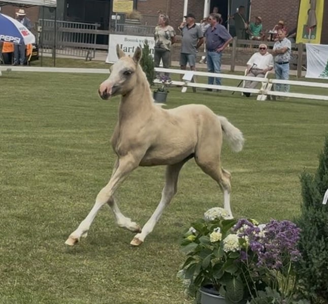 **Te koop: Veelbelovende NRPS hengst in palomino kleur** Deze charmante NRPS-gefokte hengst, geboren in 2025, heeft als vader Golden Daim F die ter dekking staat bij stoeterij Du Bois! Met een uiteindelijke stokmaat van ongeveer 135 cm is hij perfect geschikt voor jonge ruiters die zich willen ontwikkelen in de dressuursport maar hij is ook interessant om straks mee naar de hengsten keuring te gaan. Hij heeft een NRPS papier maar hij staat ook geregistreerd bij het NWPCS want hij is namelijk 75% Welsh en hij heeft op de Welsh keuring een mooie 1e premie gehaald, Smiley is een pony die heel goed kan bewegen en zijn palomino kleur maakt hem een echte eye-catcher in de piste. Dankzij zijn goede bouw en bewegingen biedt hij veel potentieel voor de toekomst. Wij stoppen veel tijd en geld in onze pony’s, Smiley is ook al gewend aan poetsen, wassen, trailer laden, vast staan en hij loopt braaf aan een touwtje. Neem gerust contact op voor meer informatie of een afspraak om hem te komen bekijken!