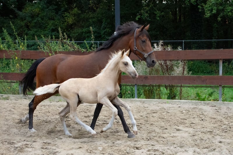 Wingman is a 1,5 years old NRPS stallion and is expected to grow into a medium-sized D-pony around the 1.43m. He has a very good pedigree: Winston’s Lisandro x Voltreffer x Highlight. His full pedigree can also be found here: https://nrps.nl/database/528008202400197-wingman-van-de-teugenaar Wingman's sire is the approved cremello stallion Winston’s Lisandro. He’s just been gelded and is being prepared for higher-level competitions; see the last (jumping) photos. Winston’s Lisandro's sire, Leuns Veld’s Winston JR, performed internationally under different riders and is currently very successful at the highest level in Poland. He first competed successfully in the Netherlands at Z-level. He has already won many victories, including selection competitions, district championships, regional championships, and Hippiade Champion! His sire, Leun Veld's Winston, competes at Z2 level in dressage, and his sire, Bodo, is currently based in Sweden. He successfully competed at Z2 level and became Dutch Champion for Young Dressage Ponies, among other titles. His dam, Leun Veld's Heidi (keur, preferent), became Benelux champion, four times national champion, and nine times regional champion. At four years old, she achieved the IBOP AA with 93 points and competed at Z level in sport. His grandmother, Molenhof's Ilonka (keur, preferent), became national champion, national reserve champion, and four times regional champion. Furthermore, there's the mare Julia, who competes at Z1 level in dressage and L level in jumping. Her sire, Le Matsjo, competed at Z2 level in dressage and Z level in jumping. Wingman's damline includes the ponies Voltreffer, who competed at the highest dressage level, Highlight, who competed at Z level in dressage and Z level in jumping, and Fabien van de Teugenaar, who competed at M level in dressage and Z level in jumping. And we could go on and on about all the successful ponies in this bloodline. We can safely say that Wingman has a fantastic pedigree! Wingman also earned a first premium at the regional NRPS foal inspection last year. He was also invited to the National Championship, but unfortunately, we were on vacation at the time, so we couldn't participate. Wingman has no (stable) vices! We also have photos of him as a foal. The photos of the brown pony are of his dam, the photo’s of the jumping brown pony is the grandmother and the photos of the cremello pony are of his sire. € 3500