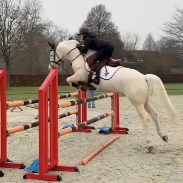 Wingman is a rising 2 years old NRPS stallion and is expected to grow into a medium-sized D-pony around the 1.43m. He has a very good pedigree: Winston’s Lisandro x Volltreffer x Highlight. His full pedigree can also be found here: https://nrps.nl/database/528008202400197-wingman-van-de-teugenaar Wingman's sire is the approved cremello stallion Winston’s Lisandro. He’s just been gelded and is being prepared for higher-level competitions; see the last (jumping) photos. Winston’s Lisandro's sire; Leuns Veld’s Winston JR has competed at Z1 dressage himself and was then sold to America a year later where he is very successful as a hunter pony, this is a stallion that comes from a very predicate-rich line where mother Leuns Veld's Sabine (previously Keur, Preferent) can be called the stallion mother with already 3 approved sons! Father Leuns Veld's Winston is Z2 dressage and has performed internationally under various riders and is currently very successful at the highest level in Poland. He has already won many victories, including Selection competitions, District Championships, Regional Championships and Hippiade Champion! The father of him is the stallion Bodo and is now in Sweden. He has performed successfully at Z2 level and became, among other things, Dutch Champion young dressage ponies. Leuns Veld's dam Heidi (keur, preferent) became Benelux champion, four times national champion, and nine times regional champion. At four years old, she achieved the IBOP AA with 93 points and competed at Z-level in sport. Molenhof's grandmother Ilonka (keur, preferent) became one national champion, one national reserve champion, and four times regional champion. Furthermore, there is the mare Julia, Z1 level dressage and L-level jumping. Her sire is Le Matsjo, who competed at Z2 level dressage and Z-level jumping. Wingman's dam's sire is the German European Championship pony stallion Volltreffer, who competed at the highest level in dressage and also won gold with the national team and silver individually. Wingman's damline also includes the ponies Highlight, who competed at Z-level dressage and Z-level jumping, and Fabien van de Teugenaar, who competed at M-level dressage and Z-level jumping. And we could go on and on about all the successful ponies in this bloodline. We can safely say that Wingman has a fantastic pedigree! Wingman also earned a first premium at the regional NRPS foal inspection last year. He was also invited to the National Championship, but unfortunately, we were on vacation at the time, so we couldn't participate. Wingman has no (stable) vices! We also have photos of him as a foal. The photos of the brown pony are of his dam, the photo’s of the jumping brown pony is the grandmother and the photos of the cremello pony are of his sire. Last price € 3250