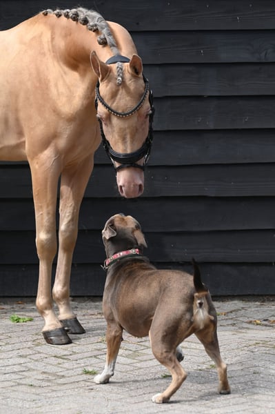 ESPERIDION DOUX LORENZO, is speciaal op heel veel fronten! Lorenzo is homozygoot amber Champagne, heeft een geweldig karakter, is braaf onder het zadel en super allround. Wij werken elke dag met veel plezier met hem, nu is de tijd aangebroken dat hij een kind of fokker heel gelukkig mag gaan maken. Geboren 06- juni 2022, gechipt, paspoort, entingen gehad, ontwormt, bekapt. Lorenzo is NRPS ingeschreven en AES goedgekeurd, hij verwacht in 2026 zijn eerste nakomelingen. Aangezien hij homozygoot Champagne kleur is, zullen al zijn nakomelingen altijd deze kleur krijgen. We vermoeden dat hij de enige hengst zal zijn in Europa in deze maat. Sinds enkele weken is Lorenzo onder het zadel, hij is braaf en goed te rijden door kinderen. We hebben hem dressuurmatig opgeleid, daarnaast springt hij onder de man, bosrit en strand. Vanaf januari heeft hij de startgerechtigde leeftijd om op wedstrijd te mogen, zowel lichamelijk als fysiek is hij hier klaar voor! Zoals u kunt zien heeft Lorenzo een prachtige afstamming en is ondanks zijn bijzonder kleur geen concessies gedaan op de kwaliteit. We hopen dat hij op een nieuw adres tot zijn recht zal komen in zowel de sport als fokkerij.
