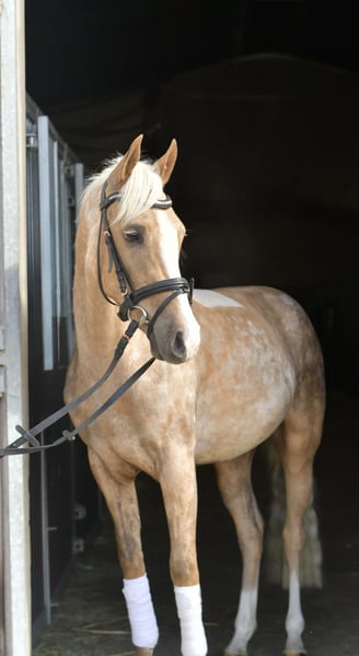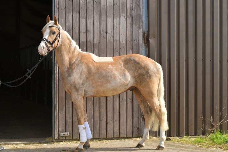 Entdecken Sie Milo, unser zauberhaftes Palominopony – ein wahrer Rohdiamant für Reiter! Milo ist bereits angeritten und beherrscht alle drei Gangarten (Schritt, Trab, Galopp) mit Bravour. Er steht am Anfang seiner Ausbildung und bietet Ihnen die einmalige Gelegenheit, ihn selbst weiter auszubilden und zu formen. Seine Talente und Möglichkeiten sind nahezu unbegrenzt! Aktuell wird Milo von uns weiter trainiert, sodass Sie die Option haben, die Ausbildung nach dem Kauf fortzusetzen. Gerne begleiten wir Sie auch weiterhin auf diesem spannenden Weg, um das volle Potenzial Ihres neuen Begleiters auszuschöpfen. **Besonderes Angebot:** Bei sofortiger Mitnahme erhalten Sie 5% Rabatt auf den Verkaufspreis! Nutzen Sie diese Gelegenheit und sichern Sie sich Ihr neues Traumpony. **Probereiten:** Überzeugen Sie sich selbst von Milos Charme und seinen Fähigkeiten! Sie sind herzlich eingeladen, ihn bei uns auszuprobieren. Die Kosten für das Vorreiten oder Probereiten betragen 30 € pro Person. Wir freuen uns darauf, Ihnen Milo vorzustellen! Kommen Sie vorbei und lassen Sie sich verzaubern!