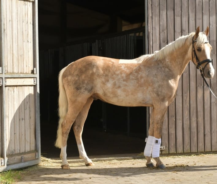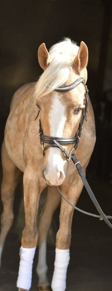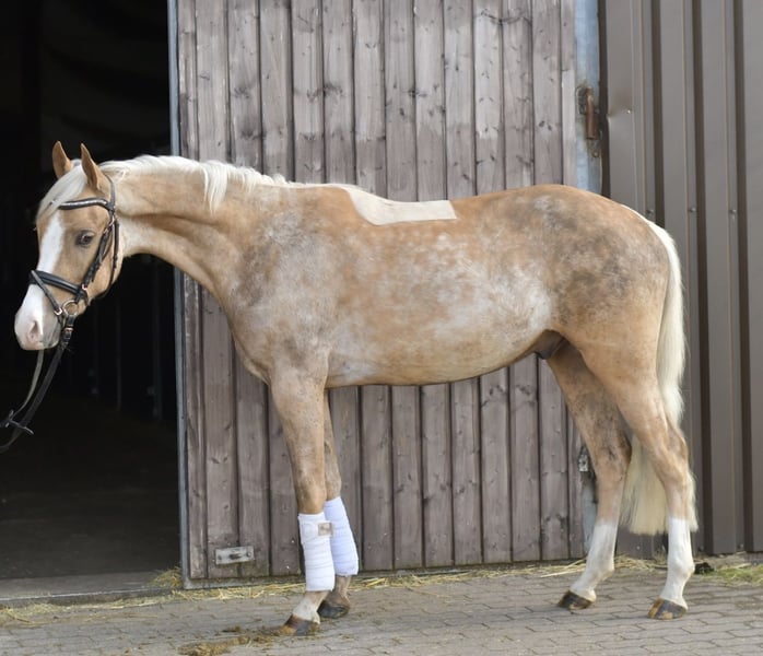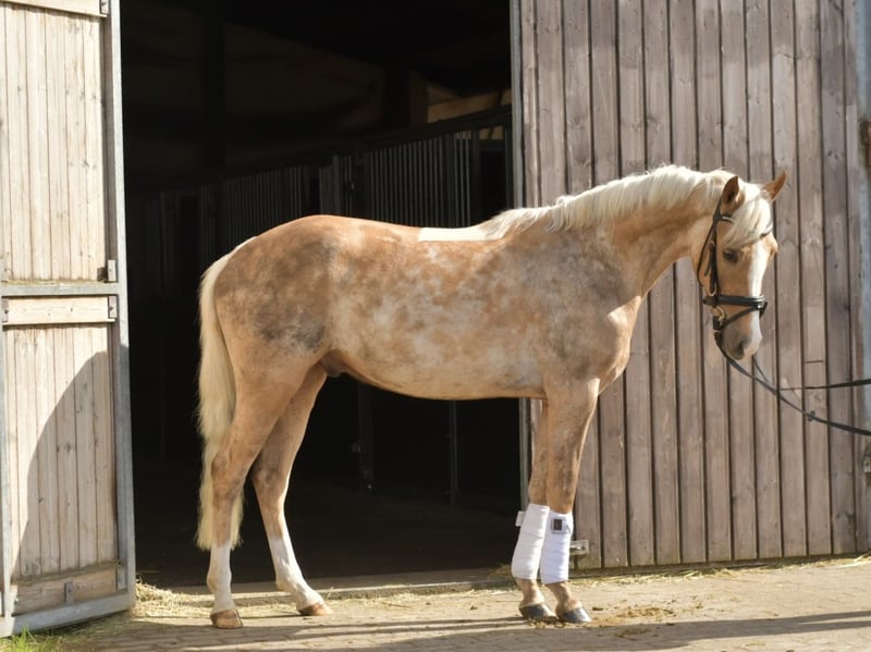 Discover Milo, our enchanting Palomino pony – a true diamond in the rough for riders! Milo is already backed and confidently masters all three gaits (walk, trot, canter). He is at the beginning of his training and offers you a unique opportunity to continue his education and shape him yourself. His talents and potential are virtually limitless! Currently, Milo is being further trained by us, giving you the option to continue his training after purchase. We are happy to support you on this exciting journey to unlock the full potential of your new companion. **Special Offer:** Take him home immediately and receive a 5% discount on the sale price! Don’t miss this chance to secure your dream pony. **Trial Ride:** See for yourself Milo’s charm and abilities! You are warmly invited to try him out with us. The cost for a pre-ride or trial ride is €30 per person. We look forward to introducing Milo to you! Come by and be enchanted!