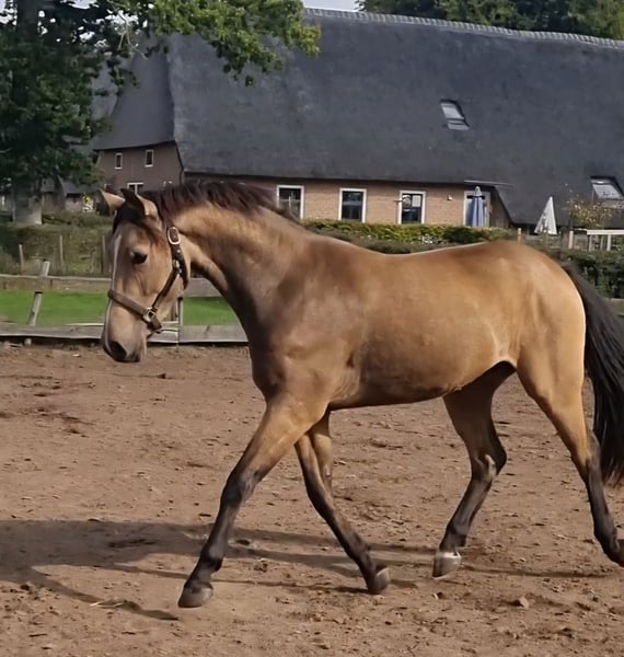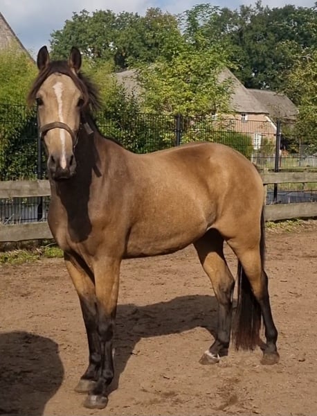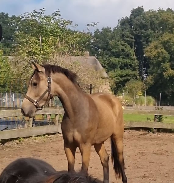 Se vende dulce pony castrado de 3 años. Don Diablo aún no ha sido educado y está listo para comenzar su formación. En este momento mide 1.36 y aún está en crecimiento. Debido a su carácter amable y confiable, será un pony muy adecuado para niños y un verdadero atractivo por su hermoso color bayo. Para más información, por favor envíe un correo electrónico o un mensaje al 0031646291752.