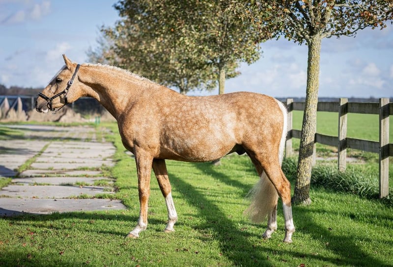 This talented nearly 4-year-old Palomini gelding, sired by Davinci du Bois, is ready to take on the future! A pony with a very child-friendly temperament, he provides an extremely safe feeling. He is very level-headed and calm, enjoys attention, and has a very pleasant disposition. His dam is a daughter of Winston Jr., coming from a very strong dam line. We are confident that this golden pony has a bright future ahead. We are seeking a wonderful home where he can bring great joy to a child! Asking price: €14,500 The pony can be inspected; costs incurred by the buyer are at the buyer's expense.